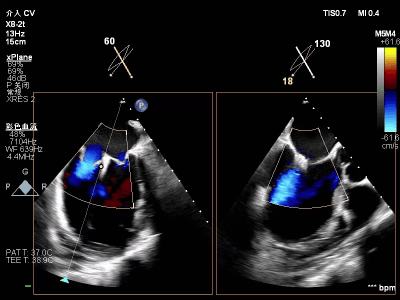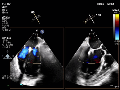 【术后一周复查心超提示】二尖瓣钳夹术后,二尖瓣反流(轻度),夹合器固定,瓣口呈双孔结构,内外侧孔分别见微量反流,反流束VC分别 0.15cm、0.18cm,估测有效瓣口面积约2.5c㎡,舒张期瓣口前向最大血流速度 1.2m/s,平均压差3mmHg,左室射血分数(EF)值提升至35%,心功能显著改善。目前患者已顺利康复出院。
