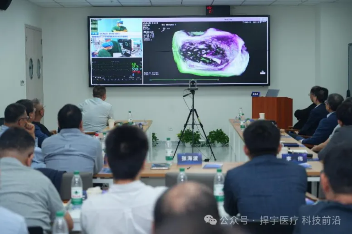 会议期间,张海波教授团队联合李伟教授完成了一例TA-TEER现场手术演示。患者为混合性二尖瓣反流(DMR+FMR),伴瓣环扩大、前瓣叶冗长、三区反流、后叶栓系及短小等复杂情况。术者在充分评估后选择置入双夹,手术获得圆满成功。现场专家就夹子型号选择、双夹放置位置及三区交界病变穿刺点等问题展开了深入讨论。