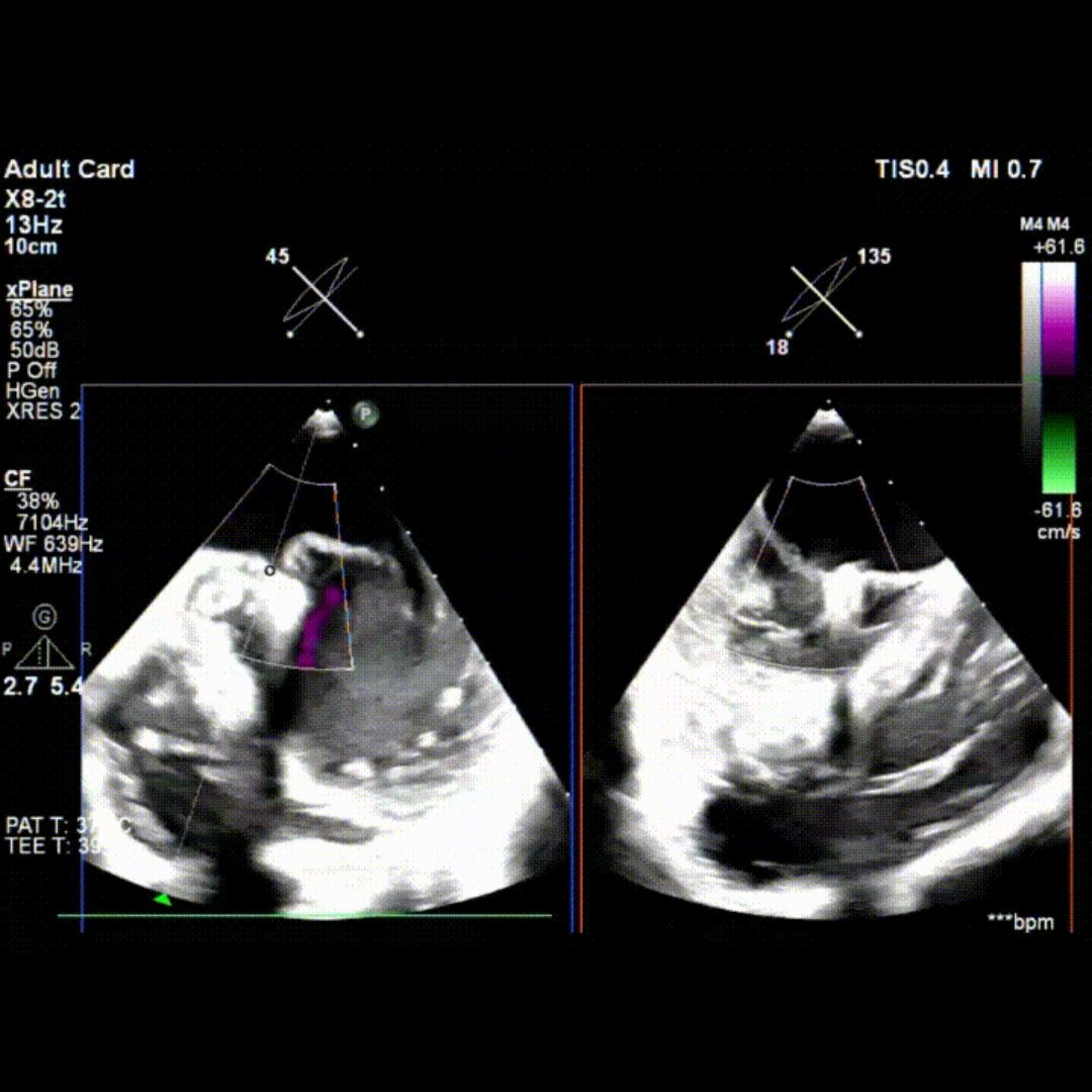 相较之下,病例二则凸显了复杂解剖结构带来的挑战——后叶严重栓系、活动度受限,使器械难以有效捕获瓣叶组织。尽管多次尝试,反流改善仍不理想。此次“失”并非技术问题,而是理性决策的体现:当手术获益有限且风险增加时,果断中止同样是负责任的外科原则。两例对比鲜明地表明,TEER的成功不仅依赖技术操作,更取决于严格的病例筛选与临床决策的把握。
