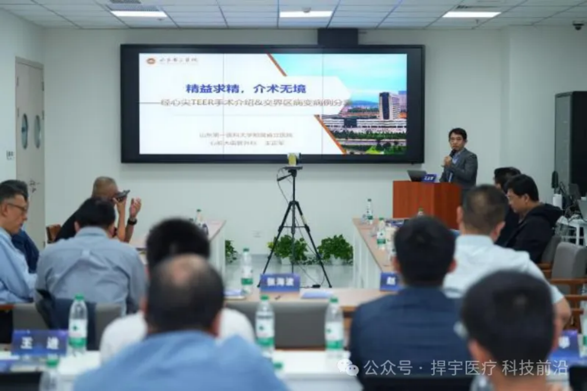 本次会议由淄博市中心医院马刚教授、山东省立医院王正军教授、首都医科大学附属北京潞河医院杨海平教授、阜外华中心血管病医院赵子牛教授、青岛大学附属医院常青教授、成都京东方医院乔军选教授、天津市胸科医院赵丰教授、昆明市延安医院张雅永教授共同主持,会议吸引了近20位讨论嘉宾莅临,包括:首都医科大学附属北京同仁医院吴明营教授、首都医科大学附属北京安贞医院王盛宇教授、首都医科大学附属北京天坛医院徐东教授、郑州市第七人民医院蔡俊教授、西部战区总医院高峰教授、首都医科大学附属北京安贞医院焦玉清教授、郑州大学第二附属医院刘雷教授、青岛市海慈医疗集团生伟教授、北京大学人民医院史艺教授、郑州市第七人民医院王国锋教授、北京大学第一医院王进教授、淄博市市立医院夏冰教授、淄博市市立医院姚波教授、首都医科大学附属北京安贞医院张涵教授、济宁医学院附属医院张洪宇教授、郑州市第七人民医院朱勇峰教授等。来自全国30家中心的40余位术者与超声专家齐聚一堂,共同探讨TA-TEER技术的最新进展与临床实践。