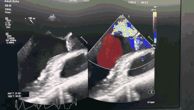 患者是71岁老年男性,体格消瘦,极重度二尖瓣反流,后叶P2及部分P3脱垂,同时合并重度肺动脉高压,STS评分6.1%,外科手术风险高。